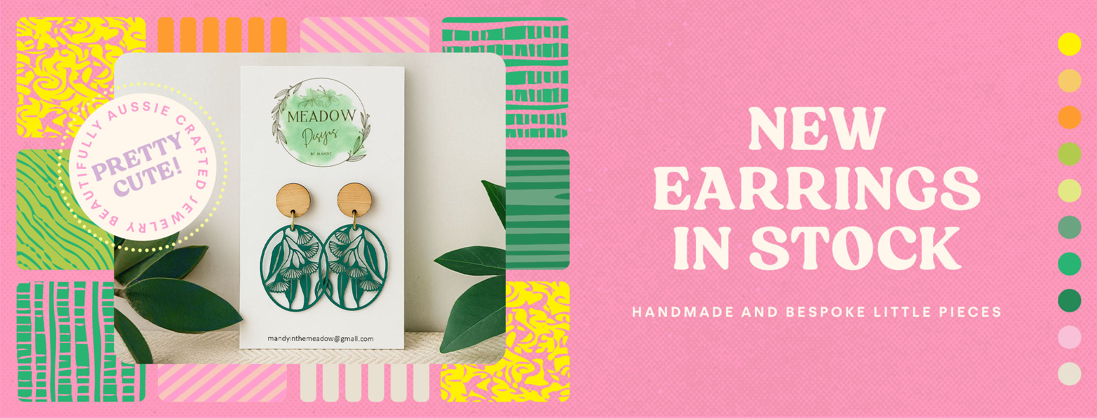 Meadow Designs Earrings are lovingly handcrafted and quirky editions to any wardrobe looking to add some fun and bold creativity. Our earrings are hand-painted, hand-assembled and each piece is made to be one-of-a-kind.