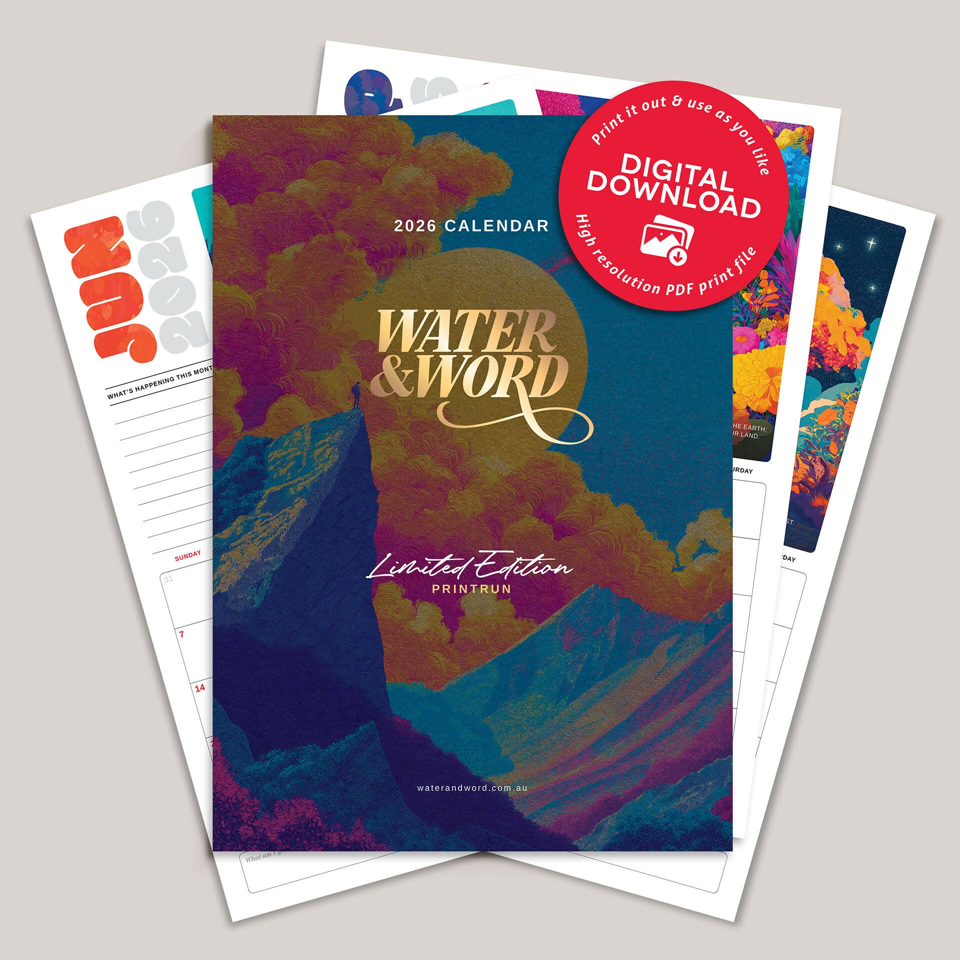 It's that time of the year again and what a year it has been! Time to get ready for a fresh start in 2026 and this is just the calendar to frame up every month. This year our Water & Word calendar is adorned with 12 unique, prophetic illustrations accompanied by a monthly scripture to declare over yourself every month. This is a limited edition run and exclusively available online here only.