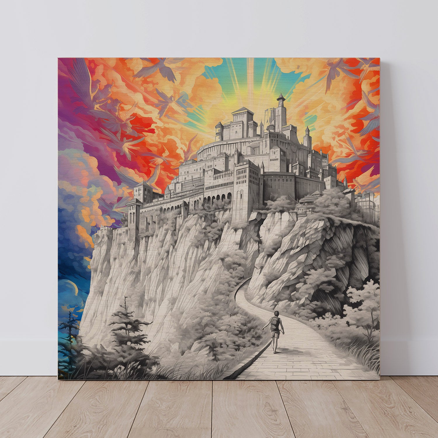 A beautiful depiction of the Lord as our fortress and rock. This Wood Print is called Strong Tower, the place of refuge for all who are weary and need protection.